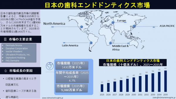 詳細な市場分析はこちらをご覧ください: https://www.kdmarketinsights.jp/report-analysis/japan-dental-endodontics-market/646