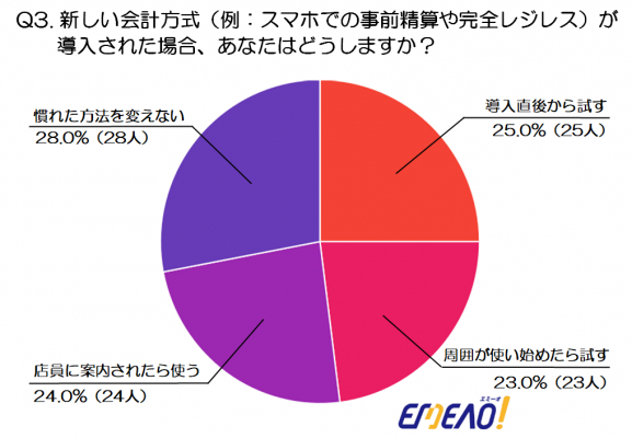 調査結果3:新しい会計方式(例:スマホでの事前精算や完全レジレス)が導入された場合、あなたはどうしますか?