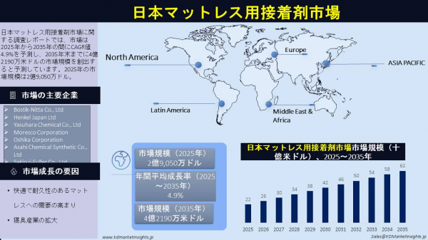 完全なリサーチレポートはこちら@ https://www.kdmarketinsights.jp/report-analysis/japan-mattress-adhesives-market/680