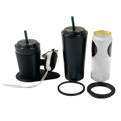 パール金属社製のストロータンブラー(Sサイズ・300ml)に対応。アタッチメントを付けることでLLサイズ・500ml用にも使用できます。さらに、アタッチメントの交換で、330ml、500ml飲料缶も使えます。
