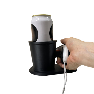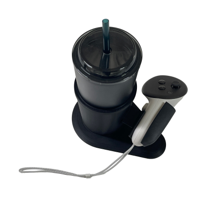 VRヘッドセットを装着したままの状態では、周囲の様子が見えず飲み物の入った容器をひっくり返してしまいがちです。コントローラーホルダーには、幅広の土台がついているので、容器を安定させ、転倒リスクを減らすことができます。