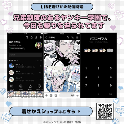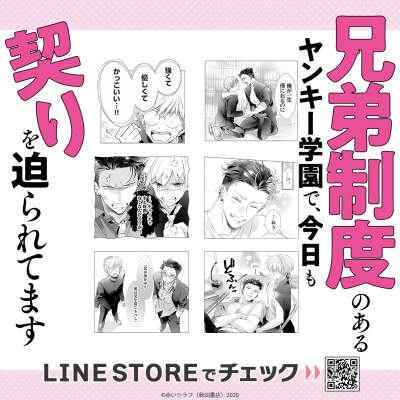 赤いシラフ先生の作品『兄弟制度のあるヤンキー学園で、今日も契りを迫られてます』(秋田書店「カチCOMI」)初となるLINEスタンプとLINE着せかえがインクルーズの販売アカウントより一斉に配信を開始!是非、LINEでも『兄弟制度のあるヤンキー学園で、今日も契りを迫られてます』をお楽しみください。