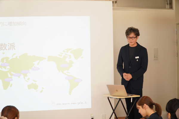 後半は、「乳児から始まるお口のケア」をテーマに、歯科医師 竹島健太郎先生より講義を行っていただきました。