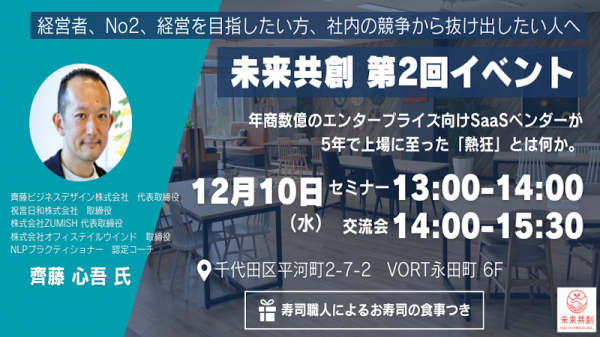 【5年で上場】年商数億エンタープライズ向けSaaSベンダーが5年で上場に至った「熱狂」を語る。『未来共創|経営者・No.2・経営を目指すビジネスパーソン向けイベント』を12月10日(水)に開催