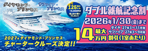クルーズ予約サイト「ベストワンクルーズ」、株式会社エイチ・アイ・エス、株式会社クルーズプラネットと3社共同で2027年4月29日発ダイヤモンド・プリンセス チャータークルーズを行います