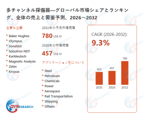 QY Research株式会社(所在地:東京都中央区)は、「多チャンネル探傷器―グローバル市場シェアとランキング、全体の売上と需要予測、2026〜2032」に関する最新調査レポートを公開しました。本レポートでは、多チャンネル探傷器の世界市場を対象に、市場規模、販売数量、価格推移、市場シェア、主要企業の競争ポジションを体系的に整理し、地域別・国別の動向に加えて、製品タイプ別および用途別の詳細セグメント分析を掲載しています。さらに、2021年から2032年までのデータを基に市場の中長期的な成長軌道を検証し、将来的な拡大余地や投資機会を提示するとともに、競争環境の構造変化や企業戦略の方向性、業界が直面する課題についても多面的に考察しています。