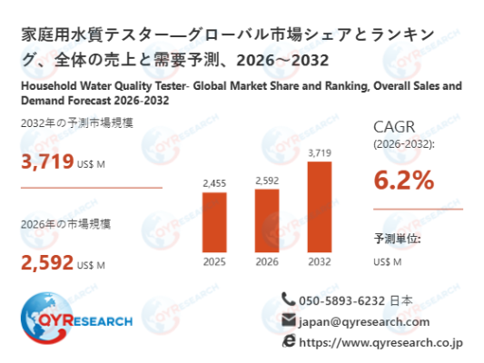 QY Research株式会社(東京都中央区)は、「家庭用水質テスター―グローバル市場シェアとランキング、全体の売上と需要予測、2026〜2032」の最新レポートを発表しました。