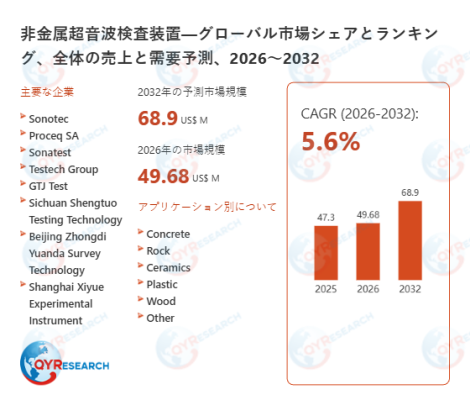 2026年4月3日、QYResearch株式会社(所在地:東京都中央区)は、「非金属超音波検査装置―グローバル市場シェアとランキング、全体の売上と需要予測、2026〜2032」に関する最新の調査レポートを発表しました。