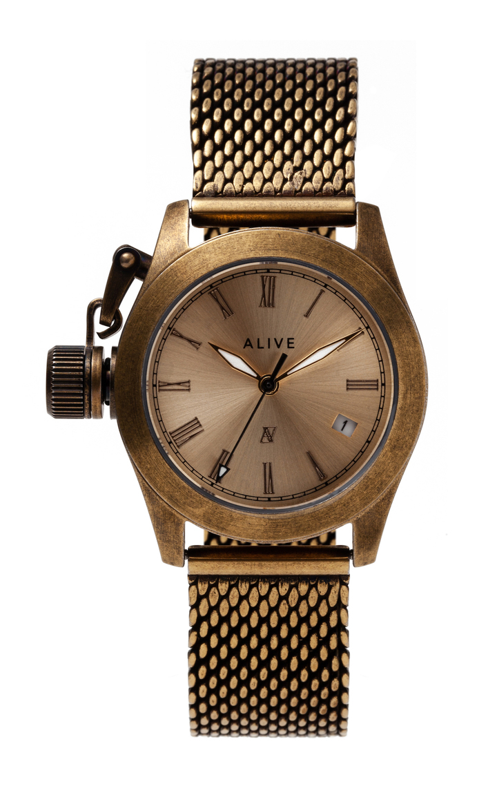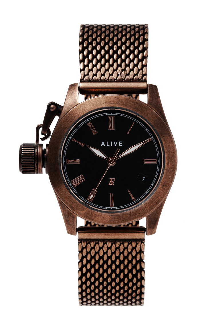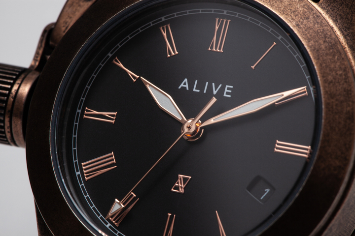 ALIVE(アライブ)は、東京都渋谷区に本社とショールームを構える、時計ブランドです。2002年の創立以来、「自分達にしか創れないデザイン」を思い描きながら時計を創っています。様々なデザインが溢れる世の中で、代わりが無い時計を創造するのは容易ではありませんが、着けていてワクワクする時計、「それ何?」という会話が生まれるような時計を、高品質で提供することを目指しています。