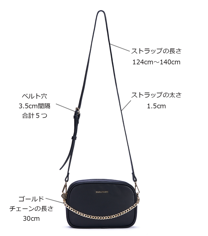 Melinda Camera Bag(メリンダカメラバッグ)は、取り外し可能なショルダーストラップと、ゴールドチェーンの2WAY仕様。買い物や旅行など、アクティブなシーンではストラップをつけて肩掛けや斜め掛けに。
