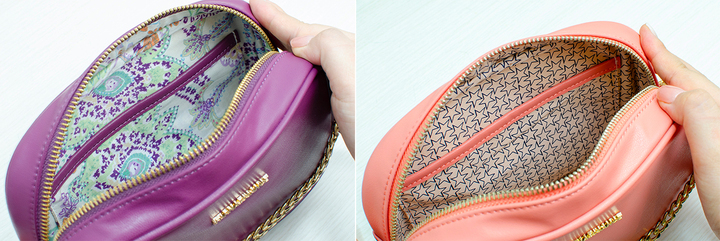 さらに、ワイルドベリー(写真左)とテラコッタ(写真右)の内側には、香港で買い付けられたデッドストックファブリックを使用。デッドストックファブリックとは、新品のまま使われる予定がなくなり、長期間倉庫に眠っている布のこと。