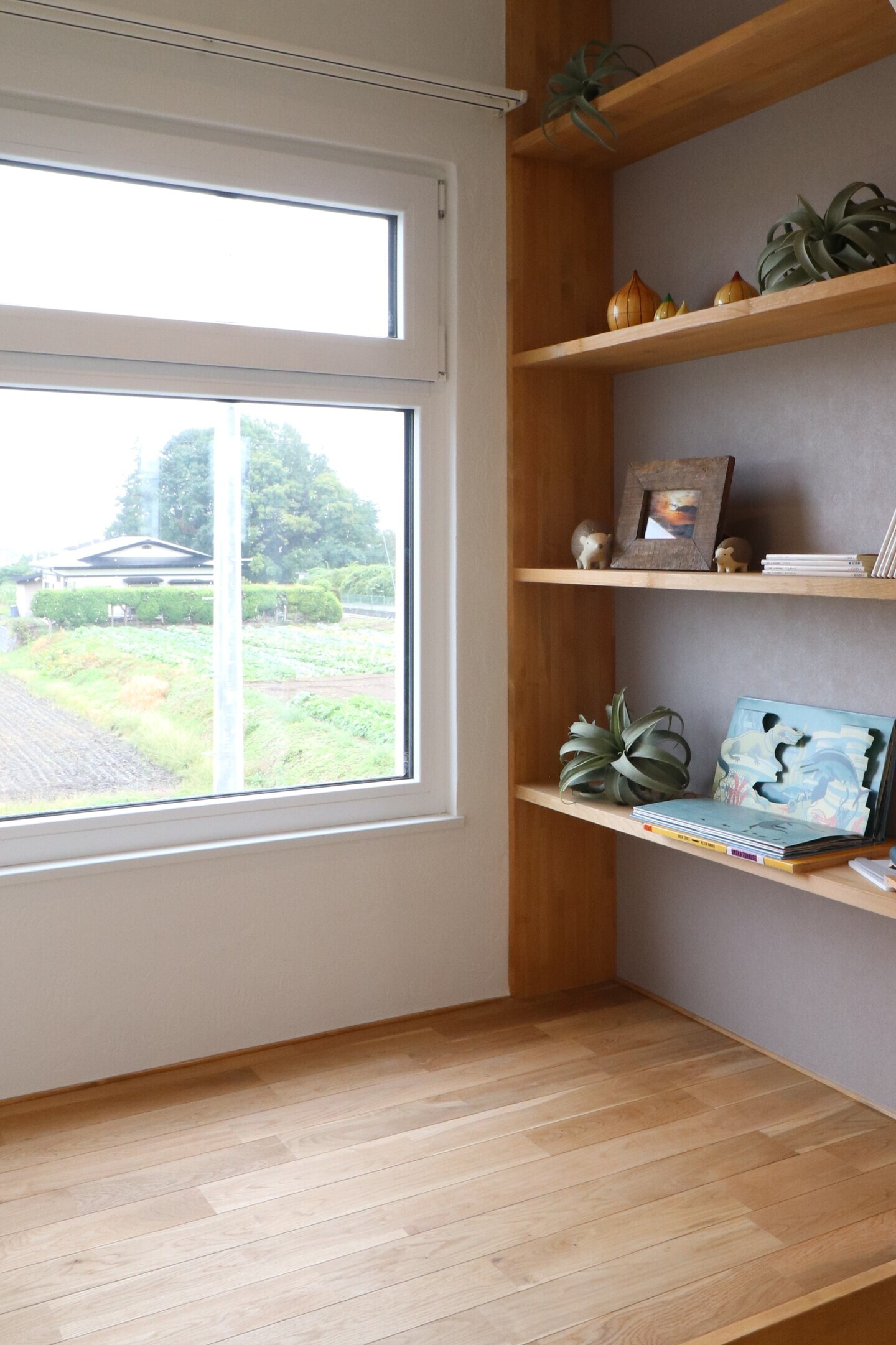 今回のお家には、随所に工務店ならではの造作が施されています。玄関のスリッパニッチや洋室の本棚ニッチ、水回りの腰壁タイルなど、暮らしの動きに寄り添いながら、住む人の個性を映し出す空間に仕上げました。