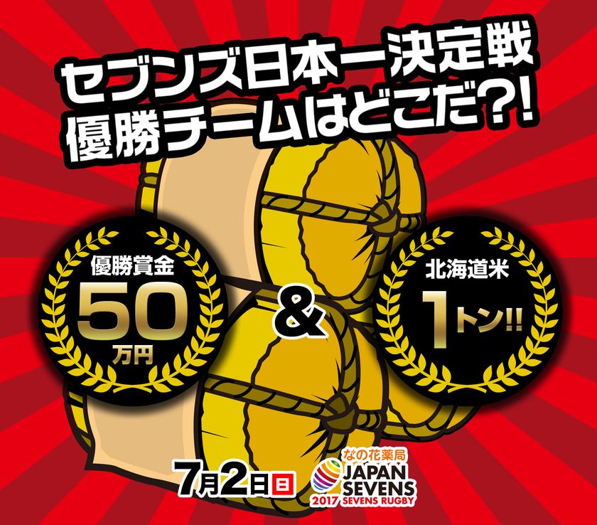 公益財団法人日本ラグビーフットボール協会は、2020年東京オリンピック7人制ラグビーの強化を視野に、社会人、大学、クラブの計12チームが参加する7人制ラグビー日本一を決める大会(優勝賞金50万円+北海道米1トン)「なの花薬局ジャパンセブンズ2017(以下、「本イベント」)」を2017年7月2日(日)に秩父宮ラグビー場(東京都港区)で開催いたします。大会当日は、9時20分〜18時30分まで12チームによる試合が行われる予定です。