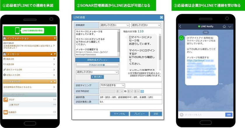イグナイトアイ提供の採用管理システム「SONAR」、LINE Notify APIを活用し、応募者へのLINEでの通知機能を実装