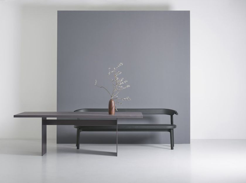 近年のインターネットの普及によりコミュニケーションは多様化、スピード化されてきているため、テーブルを囲みお互いの顔を見合わせることを可能にする「ベンチ」の重要性からデザインされてます。‘Quality time at home’家族、友人と共に過ごす大切な時間を創りあげてほしいという想いが込められた家具です。