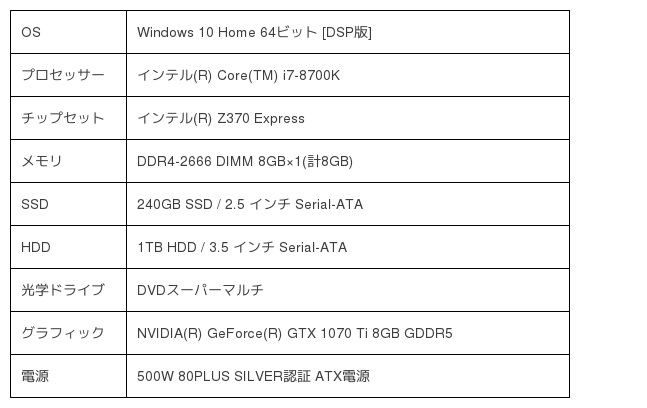 プロセッサーは最新の第8世代インテル(R) Core(TM) i7-8700Kプロセッサーを搭載しています。