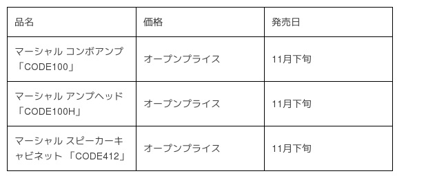 株式会社ヤマハミュージックジャパン(本社:東京都港区、代表取締役社長:小林和徳)は、イギリスのギターアンプ・ブランド「マーシャル」のモデリングアンプ「CODE(コード)シリーズ」の新製品を11月下旬に発売します。
