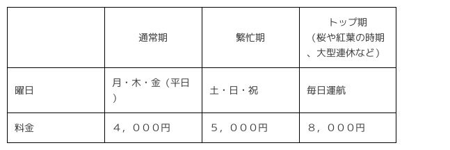 ※火・水(平日)は点検や試験運航のため定期船は運休となります