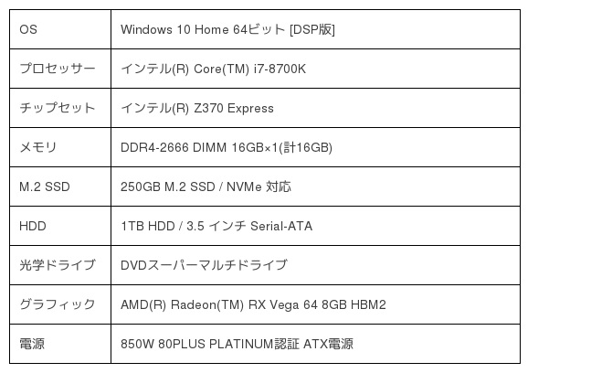 ●製品名:LEVEL-R037-i7K-VSVI [Windows 10 Home]