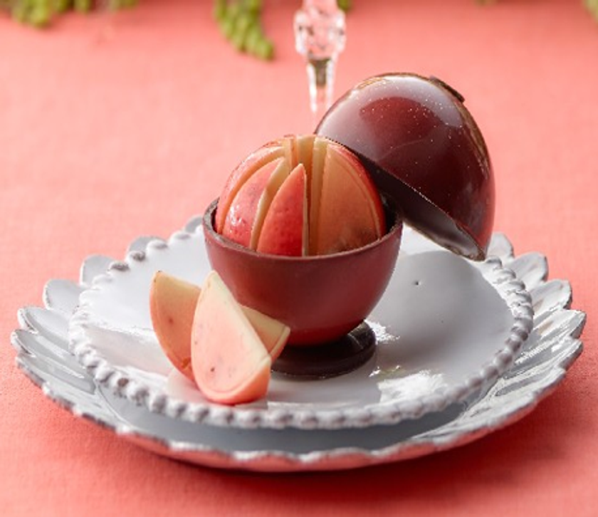 球体のチョコの中にはりんご型でりんご風味のチョコレート。