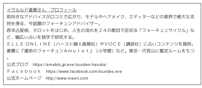 さらに、2018年2月3日(土)までの期間中、イヴルルド遙華さんのパワーワードをモノグラミングし、SNSに投稿いただいたお客さまの中から抽選で10名(予定)に、イヴルルド遙華さんによるパーソナル占いを体験いただきます。(※2018年1月1日(月・祝)は休業日)