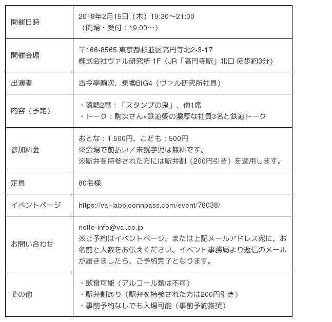 ■「駒次鉄道×駅すぱあと鉄道落語会〜駅スタンプ編〜」開催概要