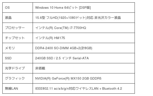 ●製品名:SOLUTION-15FX061-i7-KSS [Windows 10 Home]