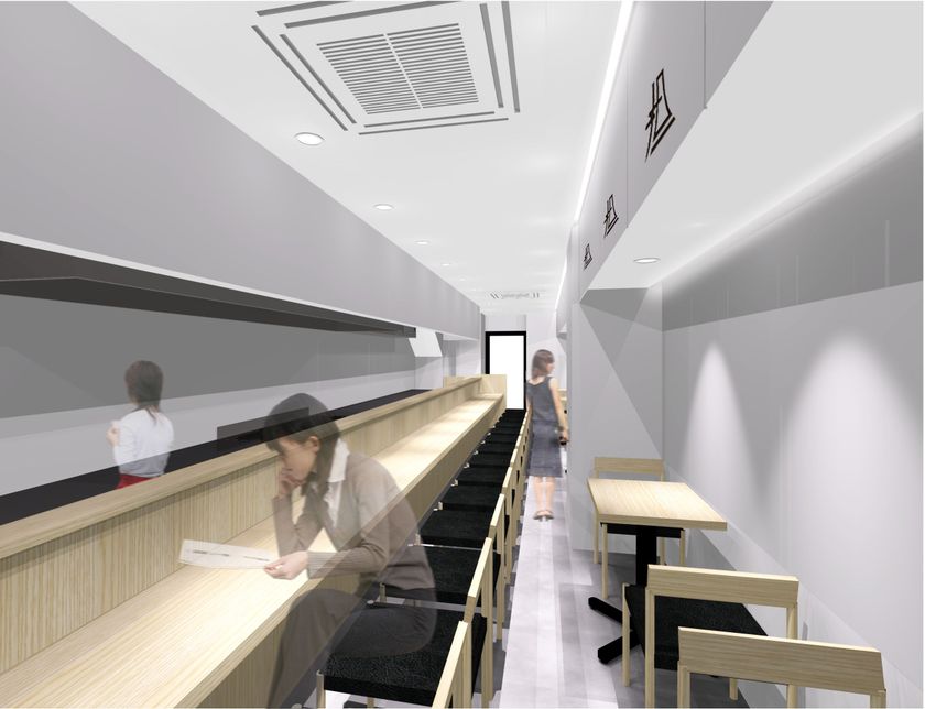 デザインコンセプトは「モダンジャパニーズ」。EDOからTOKYOにわたる日本の趣を和モダンで表現。テーマカラーは白。白木を中心として、白壁、暖簾を店内にかけ、デザインは富士山や天秤棒、日の丸などのモチーフを配置します。