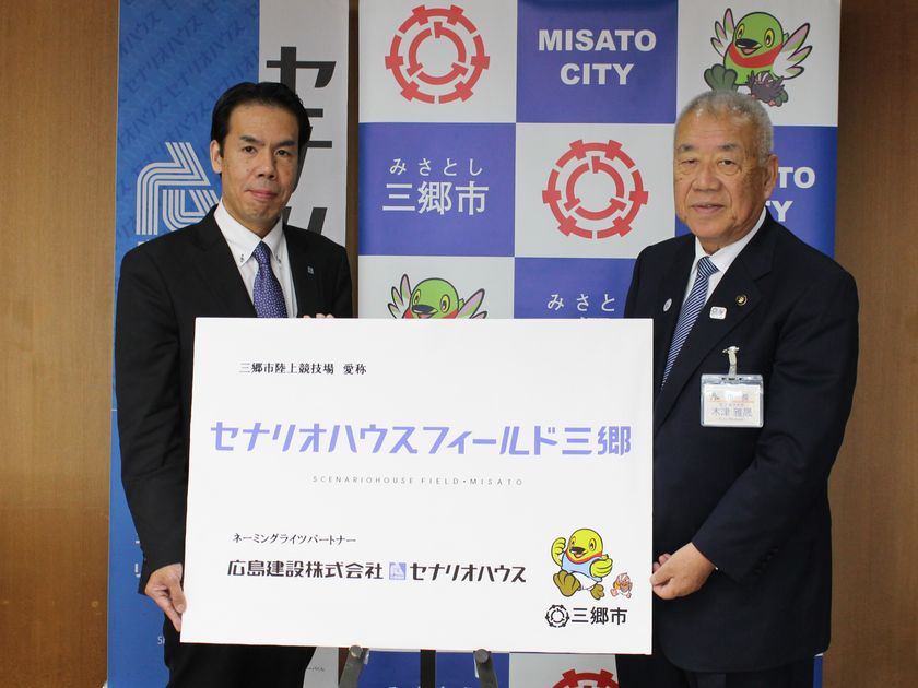 広島建設セナリオハウスは、2018年に創業50周年を迎える地域密着型のハウスメーカーです。この度当社が施設のネーミングライツを取得するのは初めてとなります。競技場至近のショールームは当社の埼玉商圏の拠点であり、今後も三郷市を中心に、多方面に渡り快適な「住生活」を提供していきたいと考えております。生活のシナリオを描く事業に邁進するにあたり、陸上競技場というスポーツ振興の場にもシナリオを描いてもらいたい、応援したいという思いから今回の契約を決定いたしました。