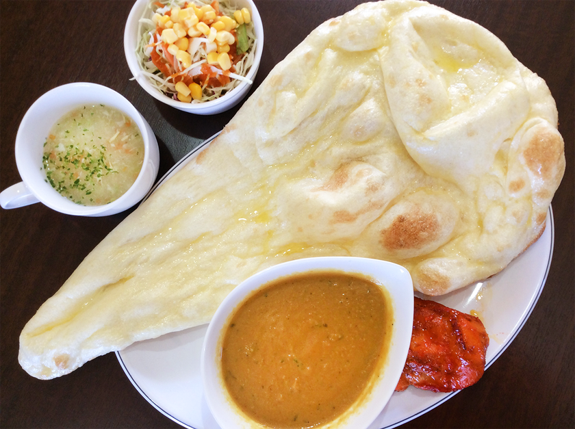 お得なランチタイムに登場するのはその名も「マサラプレミアムDXセット」。マサラプレミアムカレーに野菜スープ、ミニサラダ、タンドリーティッカと、国産小麦のナンか十六穀ライスのいずれかがついて1,500円(税込)。