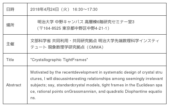 ※詳細については、明治大学HP(http://www.meiji.ac.jp/ims/)をご確認ください