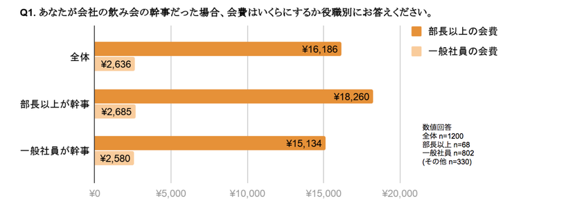 ・幹事が飲み会で払ってほしい会費は、部長以上は16,186円、一般社員は2,636円