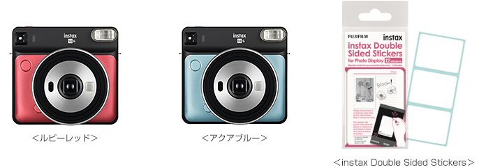 富士フイルム株式会社(社長:助野 健児)は、撮ったその場ですぐにプリントが楽しめるインスタントカメラinstax(インスタックス)シリーズの新製品として、スクエアフォーマットのフィルムに対応した「instax SQUARE SQ6」(以下「SQ6」)の新色2色「RUBY RED(ルビーレッド)」と「AQUA BLUE(アクアブルー)」を、2018年11月上旬より発売いたします。