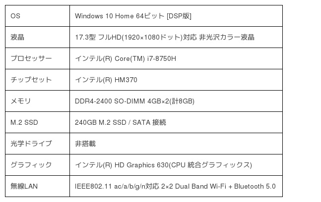 ●製品名:STYLE-17FH054-i7-UHSS [Windows 10 Home]