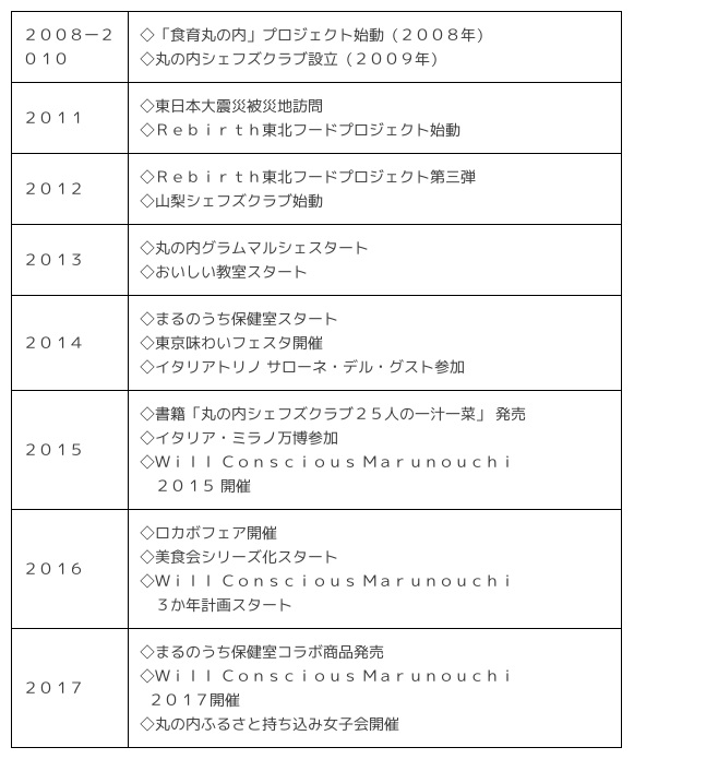 ■「食育丸の内」及び「丸の内シェフズクラブ」のこれまでの歩み(2008年〜2017年)