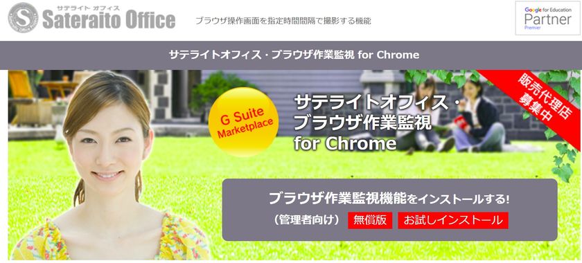 Google Cloud(TM) プレミアムパートナーであり、G Suite(TM)の販売代理店である株式会社サテライトオフィス(本社:東京都江東区、代表取締役社長:原口 豊、 http://www.sateraito.jp/ )は、Google Chrome(TM) ブラウザ向けに、ブラウザの操作画面を10秒毎(間隔は自由設定)に撮影し、操作画像を管理者のGoogle ドライブ(TM) 上に保存する「ブラウザ作業監視機能」を提供開始したことを発表します。Chromebook(TM) (ノートブック)や、通常のパソコンなどで在宅作業する場合の監視機能として利用可能です。