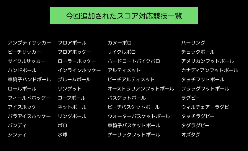 株式会社Link Sports(本社:東京都渋谷区、代表取締役:小泉 真也)は、あらゆるチームスポーツを楽しむ人たちに送るチームマネジメントツール「TeamHub」にて、対応競技数を44種目追加致しました(合計競技数:49種目)。追加した競技ごとにスコア入力ができるようになっております。当社では、「TeamHub」を通して、スポーツをする人、支える人達がより笑顔になり、「もっとスポーツをしたい」と思えるように世界を作っていけるよう、より一層に務めてまいります。