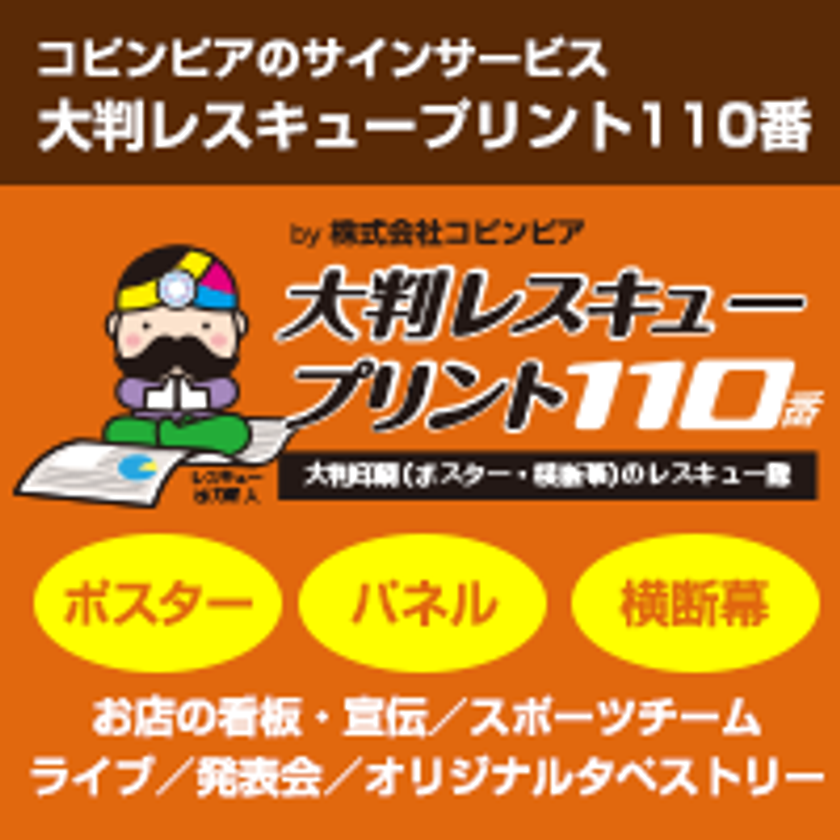 株式会社コピンピアでは、ポスターや横断幕等の大きな印刷物専門のWEBサービス『大きな印刷専門店 大判レスキュープリント110番』を開設いたしました。