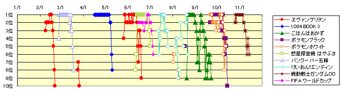 1位から10位にランクインした商品のランキング推移は以下の通りです。