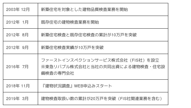 当社は2003年に新築住宅の建物検査業務をスタート。2012年に既存住宅検査業務も開始し、2019年3月に建物検査戸数は累計20万戸を突破しました。住宅の価値を高め、長く安心して暮らせる良質な住宅を増やすために、建物検査は欠かせない存在となりつつあります。