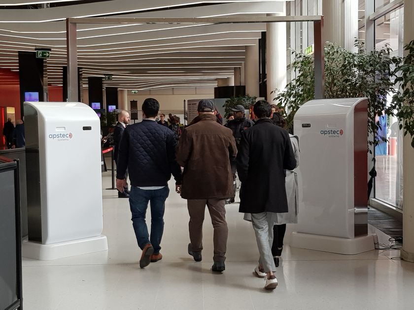 この装置(以下、「HSR」)は、服の下に隠匿された爆発物、銃火器(金属物)やバックパック内にある脅威物が施設内に持ち込まれることを防ぐ機能があり、装置の間を通過するだけで一次スクリーニング(検査)をすることができます。ピラーと呼ばれる装置の間は同時に複数の人が通過できることから人の流れを止めることはありません。処理能力としては1時間当たり最大で1万人を検査できます。