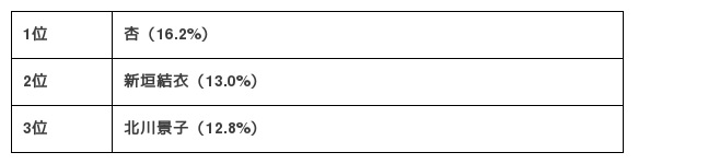 衣」(13.0%) 3位「北川景子」(12.8%)