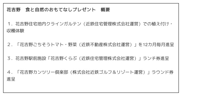 本プレゼントは、近鉄グループのグループ力を集結し、“四季を身近に楽しむ、花吉野ならではのゆとり生活”を体感していただくツールとして企画しました。(詳細は別紙https://www.atpress.ne.jp/releases/196946/att_196946_1.pdf参照)