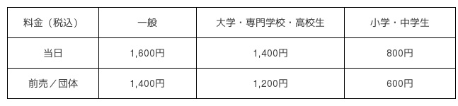 □入 場 料 一般 1,600円(1,400円)