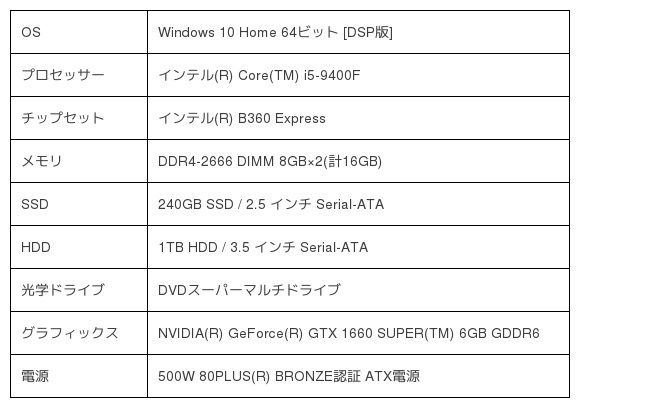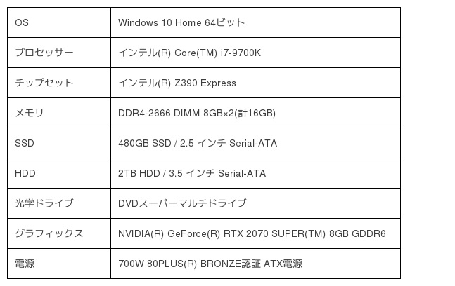 ●製品名:LEVEL-R040-i7K-TWA-NHigh [Windows 10 Home]