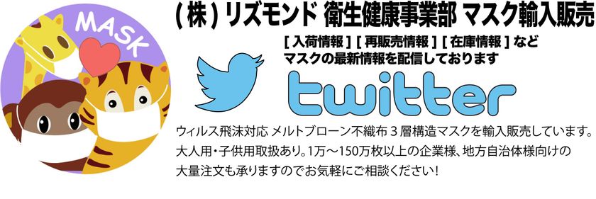 株式会社リズモンドエンタープライズ(本社:千葉県木更津市、代表取締役:小澤 賢一、以下 リズモンド)は主力事業であるアパレル製造小売業とは別に衛生健康事業部を新たに開設し新型コロナウイルスの感染拡大により需要の高まったウイルス飛沫に対応するマスク「メルトブローン不織布3層構造マスク」をパートナー工場から輸入し発売いたします。