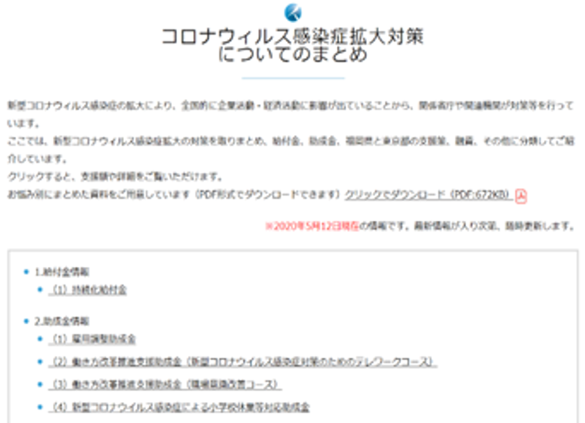 これは、“緊急事態宣言”の発令に伴い、業績に悩む企業経営者や個人事業主、フリーランスで働く人たちが助成金や融資の情報を容易に検索できるようにと開設したものです。