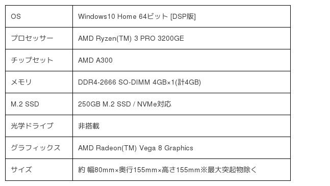 ◇ AMD Ryzen 3 Pro 3200GE 搭載 小型PCについて