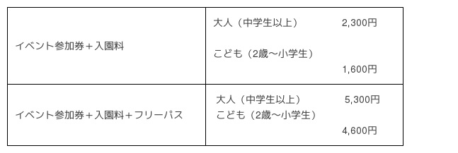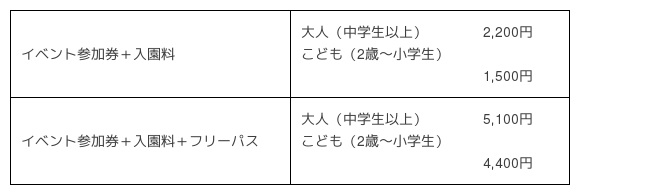 イベント参加券 800円(入園料、イベント対象アトラクション利用料が別途必要)