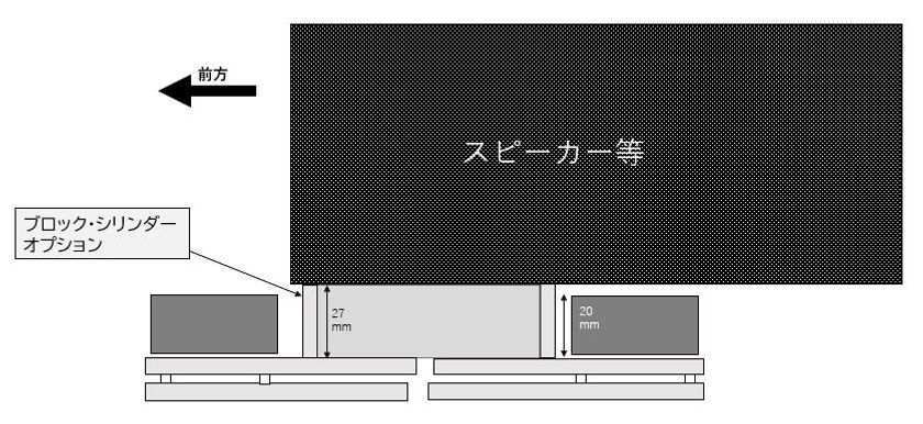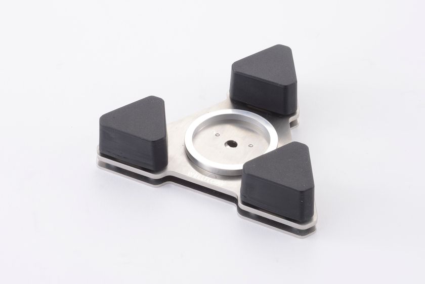 「WELLDELTA(ウェルデルタ)」をスパイクや脚を持たない機器に使用する際は、高さ調整のため、中心部にオプションのアルミ削り出しブロック(高さ28mm)を装着したモデルをお選びください。